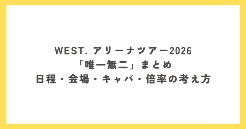 WEST. アリーナツアー2026「唯一無二」まとめ|日程・会場・キャパ・倍率の考え方