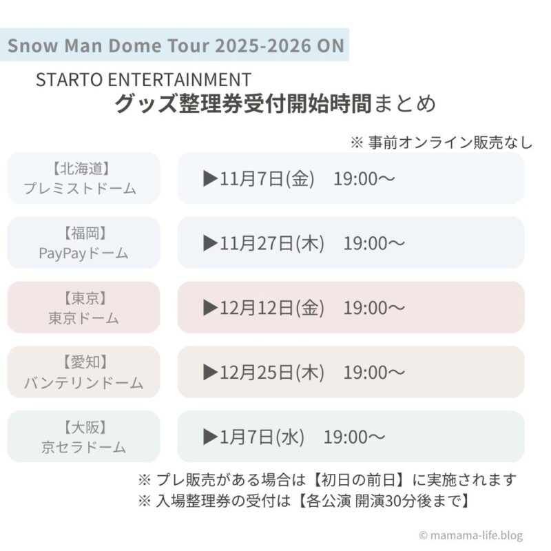 Snow Man Dome Tour 2025-2026 ONは、グッズ整理券がなくなってしまいグッズが買えなかったと言う声も出ています。