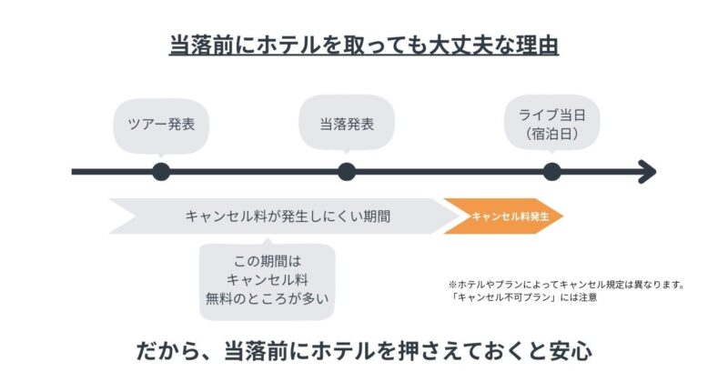 つまり、当落前にホテルを予約してもキャンセル料が発生しにくいということ。